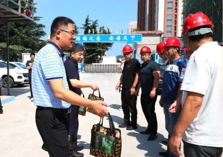 在新苑陽(yáng)光項(xiàng)目部,鄭春剛表示,工會(huì)是職工的“娘家人”,所有工作以維護(hù)職工的利益和健康為中心。近期,威海持續(xù)高溫,市總工會(huì)高度重視職工防暑降溫工作,大力開(kāi)展“送清涼”活動(dòng),確保勞動(dòng)者舒心工作、平安度夏。孫利劍代表集團(tuán)感謝市總工會(huì)的關(guān)懷和支持,表示集團(tuán)會(huì)按照上級(jí)的部署,做好防暑降溫等工作,確保職工安全度夏和各項(xiàng)工作的有序開(kāi)展。同時(shí),集團(tuán)始終關(guān)心一線(xiàn)職工的訴求,盡心盡力為職工群眾辦實(shí)事、辦好事。鄭春剛、孫利劍與新苑陽(yáng)光項(xiàng)目的一線(xiàn)職工親切交談,了解工作情況,對(duì)
