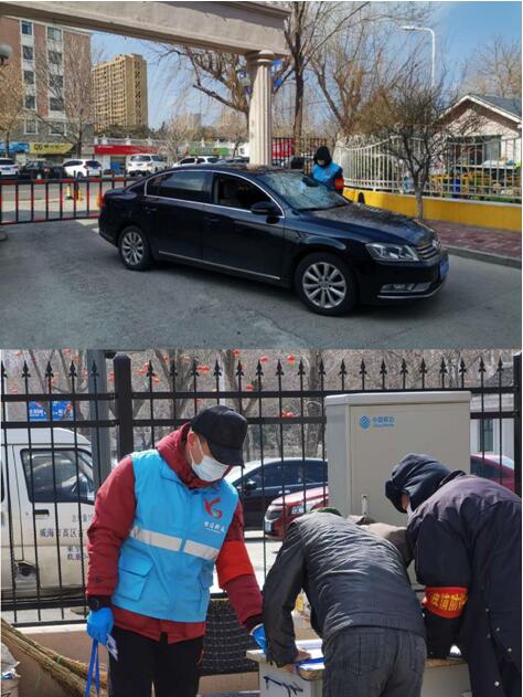 “你好,請配合量一下體溫,用手機(jī)微信或支付寶掃一下二維碼進(jìn)行登記?!痹谒{(lán)天小區(qū)和世紀(jì)家園小區(qū)路口檢查站里,各有一支城建黨員志愿服務(wù)隊(duì)正積極踐行雷鋒精神,全心全力投入到社區(qū)防疫工作中。他們與怡海園社區(qū)工作人員聯(lián)合防控,對外來車輛和流動(dòng)人員進(jìn)行登記及體溫檢測,做好疫情監(jiān)測、排查、預(yù)警、防控、登記等工作。最大限度減少人員流動(dòng),外來走親訪友人員一律勸退,努力把疫情風(fēng)險(xiǎn)降到最低,守好社區(qū)第一道防線,守住人民群眾健康安全防線。