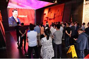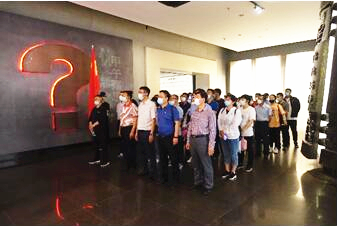 集團黨員一起穿越了120多年的時光隧道,共同回顧了甲午戰(zhàn)爭以來中華民族救亡圖存的曲折歷程,深刻理解了歷史和人民為什么選擇共產(chǎn)黨、為什么選擇社會主義等重大話題,進一步增強了對社會主義的理論自信、道路自信、制度自信、文化自信。面對黨旗,集團黨委副書記孫曉東同志帶領(lǐng)全體黨員一起重溫入黨誓詞:“我志愿加入中國共產(chǎn)黨……為共產(chǎn)主義奮斗終身,隨時準(zhǔn)備為黨和人民犧牲一切,永不叛黨。”鏗鏘有力的宣誓聲久久回蕩在館內(nèi),深深感染了現(xiàn)場所有人……