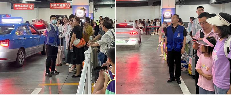 “請您到這邊排隊上車”“行李我?guī)湍帷薄罢埿⌒纳砗筌囕v”,活動當(dāng)天,地