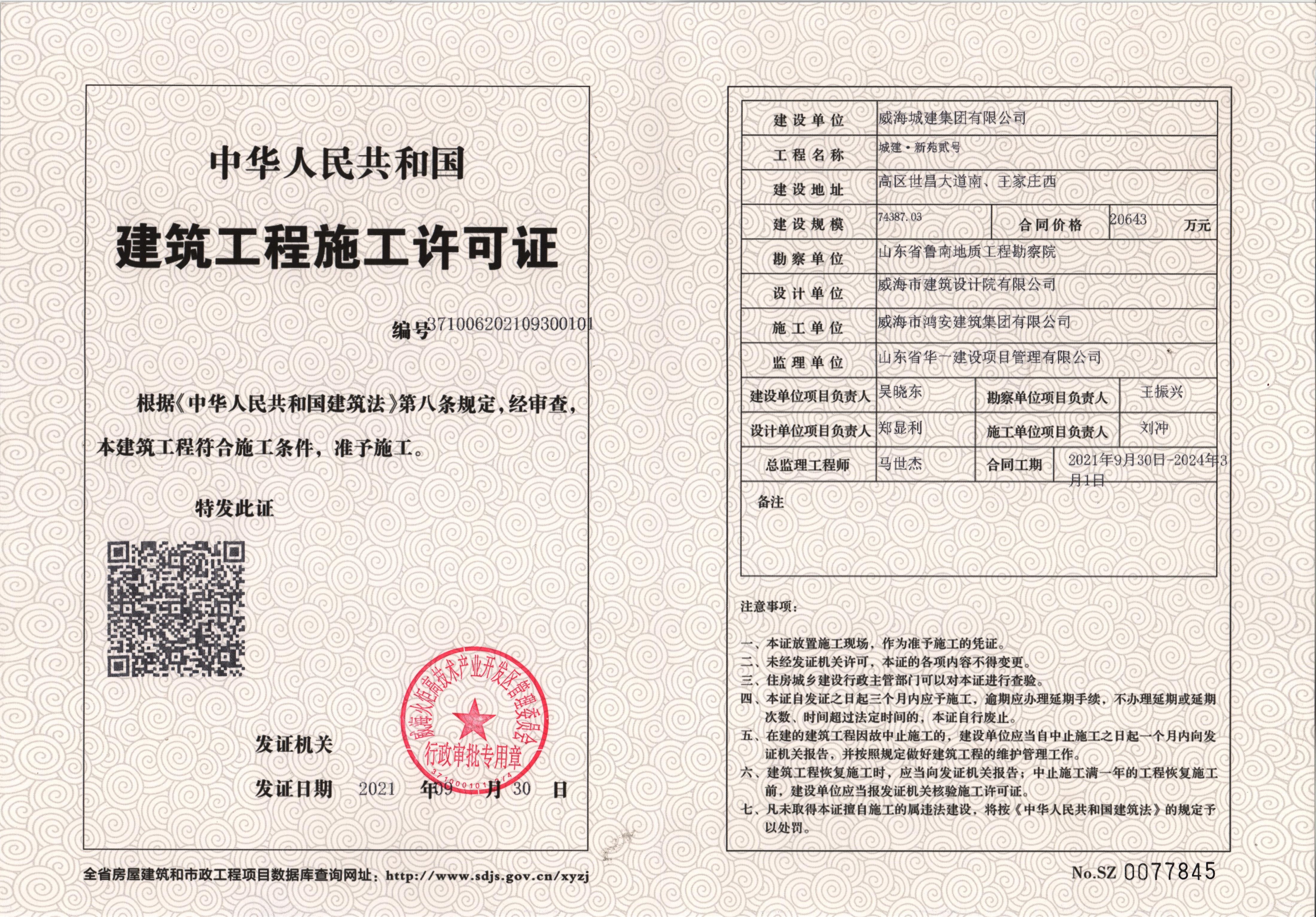 建設(shè)單位:威海城建集團(tuán)有限公司 負(fù)責(zé)人:吳曉東